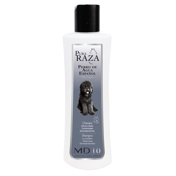 Champú concentrado para Perro de Agua Español con pelo negro, formulado para realzar el tono oscuro natural del pelaje, aportando brillo y una hidratación equilibrada sin alterar la textura de los rizos.
